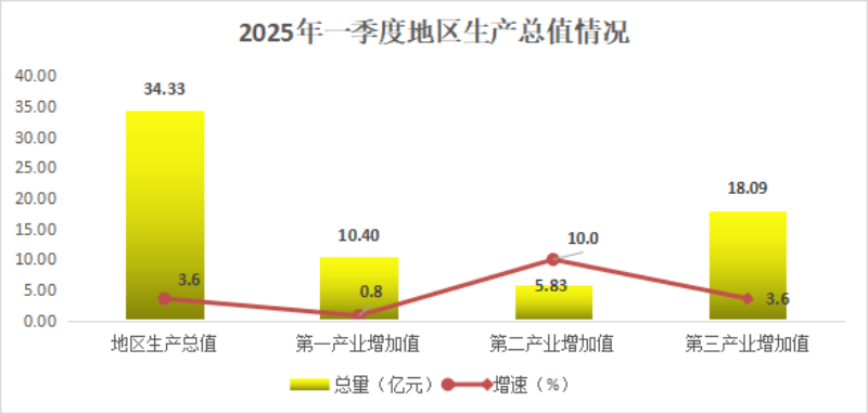 根據(jù)清遠(yuǎn)市地區(qū)生產(chǎn)總值統(tǒng)一核算結(jié)果,2025年一季度,陽山地區(qū)生產(chǎn)總值34.33億元,按不變價格計算,同比增長3.6%。其中,第一產(chǎn)業(yè)增加值10.41億元,增長0.8%;第二產(chǎn)業(yè)增加值5.83億元,增長10%;第三產(chǎn)業(yè)增加值18.09億元,增長3.6%。