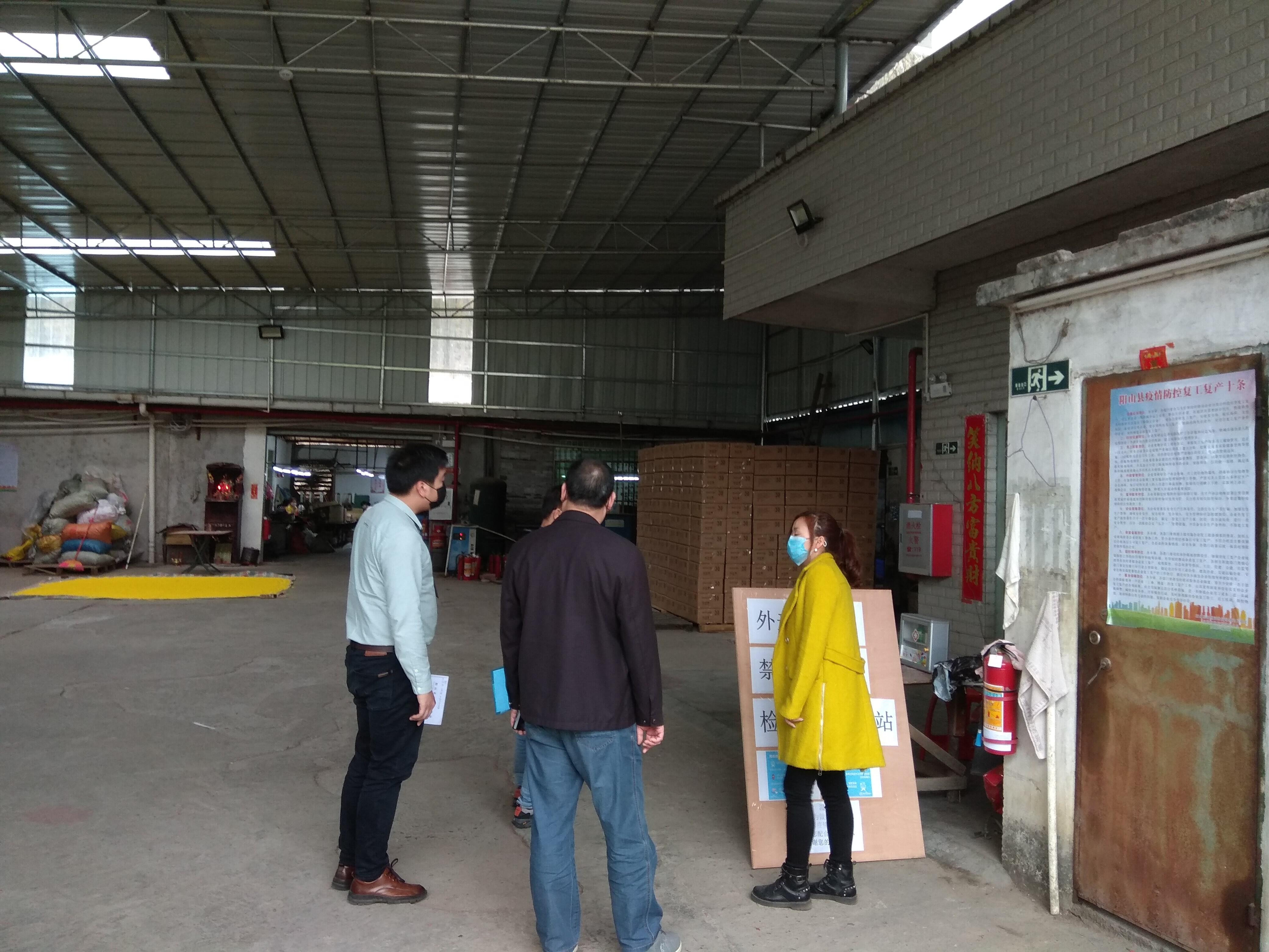 2020年2月11至13日,按照陽山縣新型冠狀病毒感染的肺炎疫情防控指揮部的部署要求,陽山縣應(yīng)急管理局黨組成員邱偉文帶領(lǐng)局相關(guān)工作人員到廣東揚(yáng)山聯(lián)合精密制造股份有限公司、清遠(yuǎn)市陽山榮璟鞋業(yè)有限公司、陽山縣城南卓業(yè)花廠等企業(yè)開展春節(jié)后企業(yè)復(fù)產(chǎn)復(fù)工及新冠肺炎疫情防控工作檢查,主要檢查企業(yè)是否按照《廣東省安全生產(chǎn)委員會(huì)辦公室 廣東省應(yīng)急管理廳關(guān)于切實(shí)加強(qiáng)春節(jié)后企業(yè)復(fù)產(chǎn)復(fù)工安全生產(chǎn)工作的通知》(粵安辦〔2020〕7號(hào))文件要求落實(shí)復(fù)工前“六個(gè)一”措施,是否按照《關(guān)于印發(fā)<清遠(yuǎn)市加強(qiáng)企業(yè)春節(jié)后復(fù)工復(fù)產(chǎn)疫情防控工作方案>的通知》(清防疫指辦〔2020〕22號(hào))文件要求落實(shí)新冠肺炎疫情防控的各項(xiàng)措施。