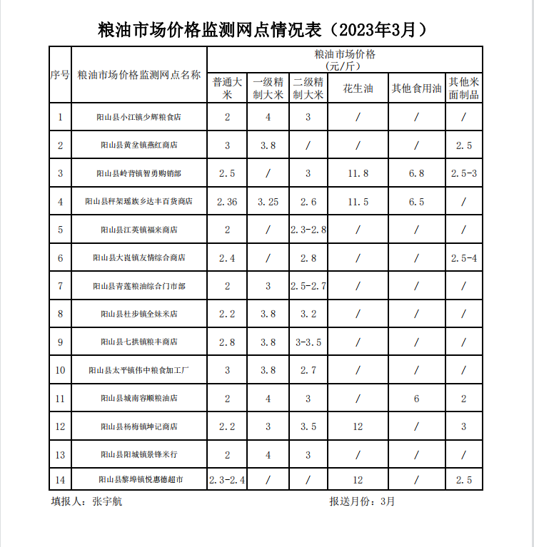陽山縣糧食市場價格監測網點情況表 (2023年3月)