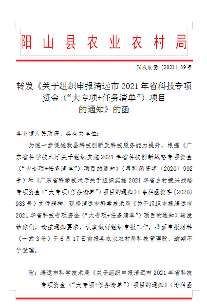 關于組織申報清遠市2021年省科技專項資金(“大專項+任務清單”)項目的通知.zip