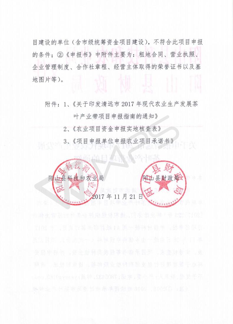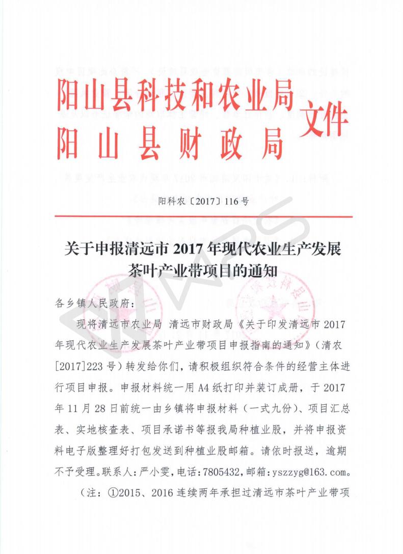 關于申報清遠市2017年現代農業生產發展茶葉產業帶項目的通知