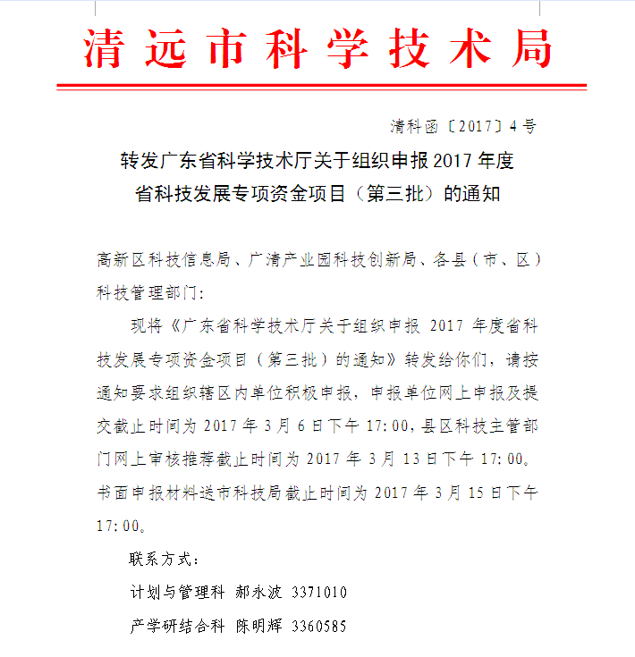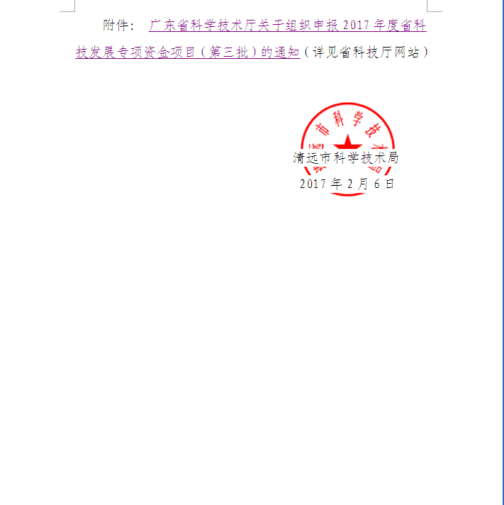 轉發廣東省科學技術廳關于組織申報2017年度省科技發展專項資金項目(第三批)的通知