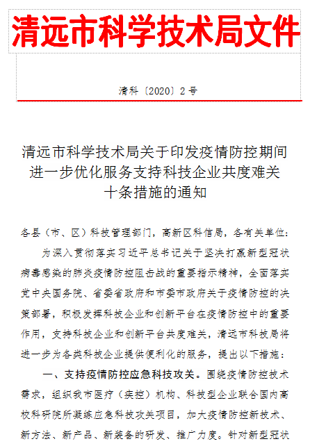 清遠(yuǎn)市科學(xué)技術(shù)局關(guān)于印發(fā)疫情防控期間進一步優(yōu)化服務(wù)支持科技企業(yè)共渡難關(guān)十條措施的通知