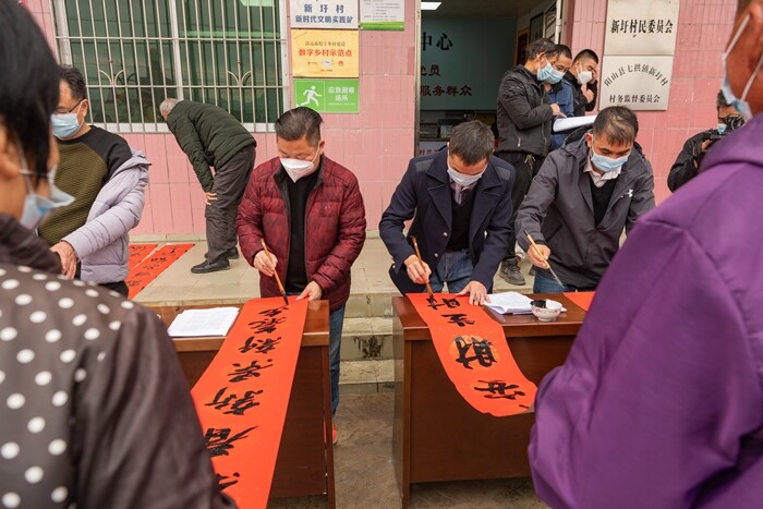 據記者報道:書法家們在現場揮毫潑墨,筆走龍蛇,一句句寓意吉祥的祝福語,令濃濃的春意年味撲面而來。得知書法家下鄉送春聯,村民們早早就圍攏過來,在選中心儀的春聯后,就讓書法家即席揮毫,一幅幅吉祥喜慶、墨寶飄香的春聯讓大家歡喜不已。參加活動的書法家說:“送春聯下鄉是走進基層服務群眾的最好形式,還有利于弘揚中華優秀傳統文化,營造健康文明、溫馨和諧的新春文化氛圍,所以大家即使再忙也要抽時間參加,將我們的書法學以致用,用于惠民,令更多的農民受益,讓他們度過一個愉快的春節。”據陽山縣文化館介紹,書法家送春聯下鄉的公益活動在當地已經開展多年,今后還會繼續堅持發揚。