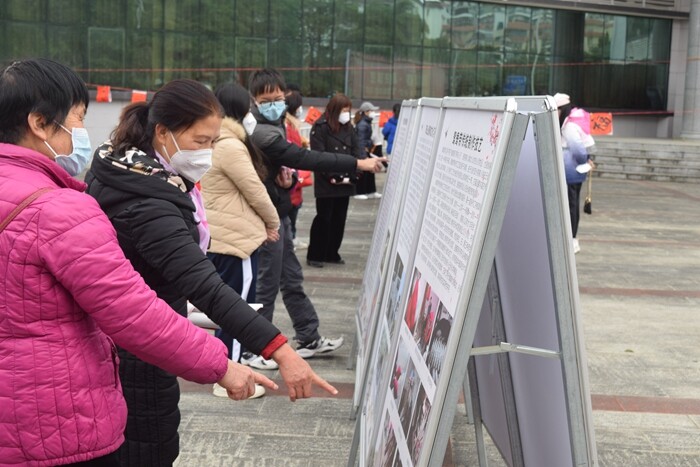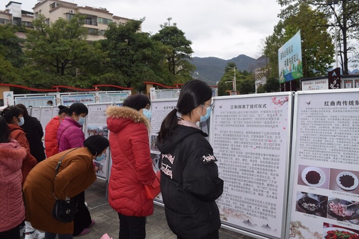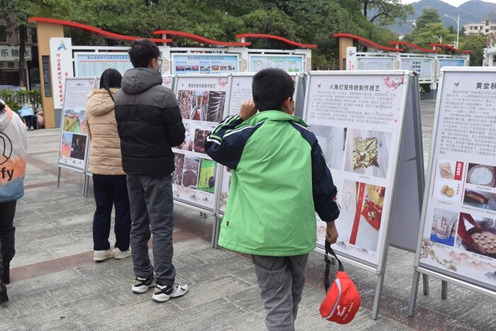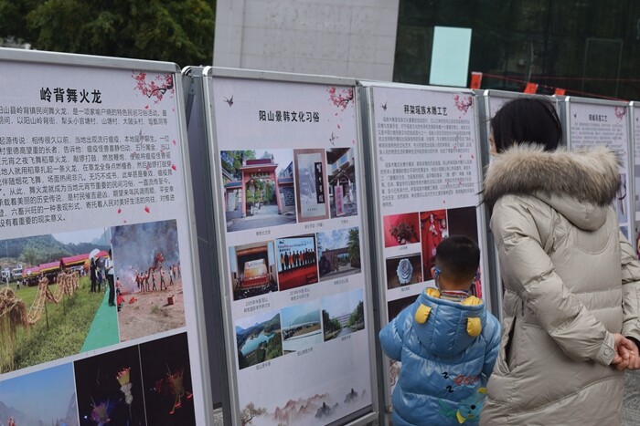 2023年1月15日上午,在陽山縣圖書館門前廣場里文化服務志愿者有序地將圖文并茂的非遺展板整齊鋪開。隨著附近同時開展的“墨香揮春·春到福來”——書法名家送福送春聯活動的涌涌人流,非遺展板前的觀眾也絡繹不絕。現場群眾一邊討論一邊用手指點比劃著,對我縣非遺項目產生了濃厚的興趣和熱情。展覽讓大家感受非遺文化魅力,開闊視野與增長知識的同時,進一步體現了我縣非物質文化遺產保護成果,增強了民眾對傳統文化的認同感和自豪感,提升了人民對文化遺產的保護意識。