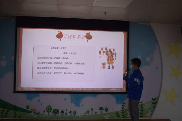 在活動現(xiàn)場,文化志愿者道敏老師不僅生動細致地講解了關(guān)于元宵節(jié)的文化知識,還給小朋友們分享了兩首詞:辛棄疾的《青玉案·元夕》和歐陽修的《生查子·元夕》,這讓參與者極大地加深了對于元宵節(jié)這一傳統(tǒng)節(jié)日所蘊含的深厚文化背景的認(rèn)知。各位小朋友也躍躍欲試,陸續(xù)發(fā)言,分享自己對元宵節(jié)的認(rèn)識。