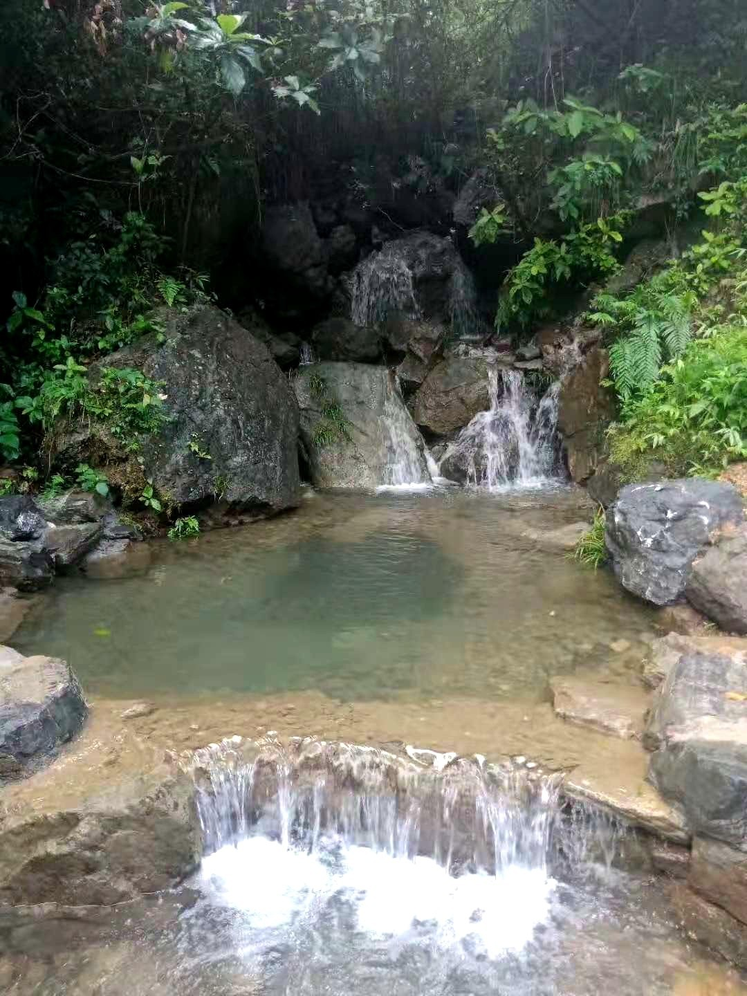 不想上磨刀坑的可以在分岔口往左走,抵達賢令山景點之一——水簾洞,水簾洞洞高數丈,每逢春夏時節,水從上面流下,形成一幅珠簾將洞口遮蔽,故而得名水簾洞,洞東西貫通,鐘乳石高懸掛,滴泉叮咚,洞口清潭淺綠,洞外藤蘿紫秀。