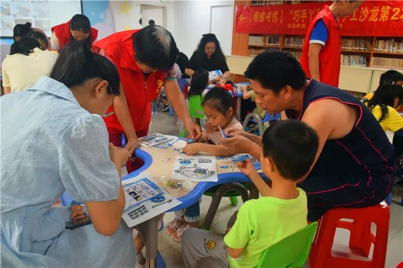 小小的手接過了包裝精致的材料包,接下來,便開始了小小的科學(xué)實(shí)驗(yàn)。小朋友們按照老師的講解一步步拼接、組裝,小小的零部件,考驗(yàn)著人的耐性,在忙得不亦樂乎的同時(shí)也遇到了一些小困難,終于,在文化志愿者和家長們的協(xié)助下,小讀者們終于安裝好了電池,并成功點(diǎn)亮了手電筒。