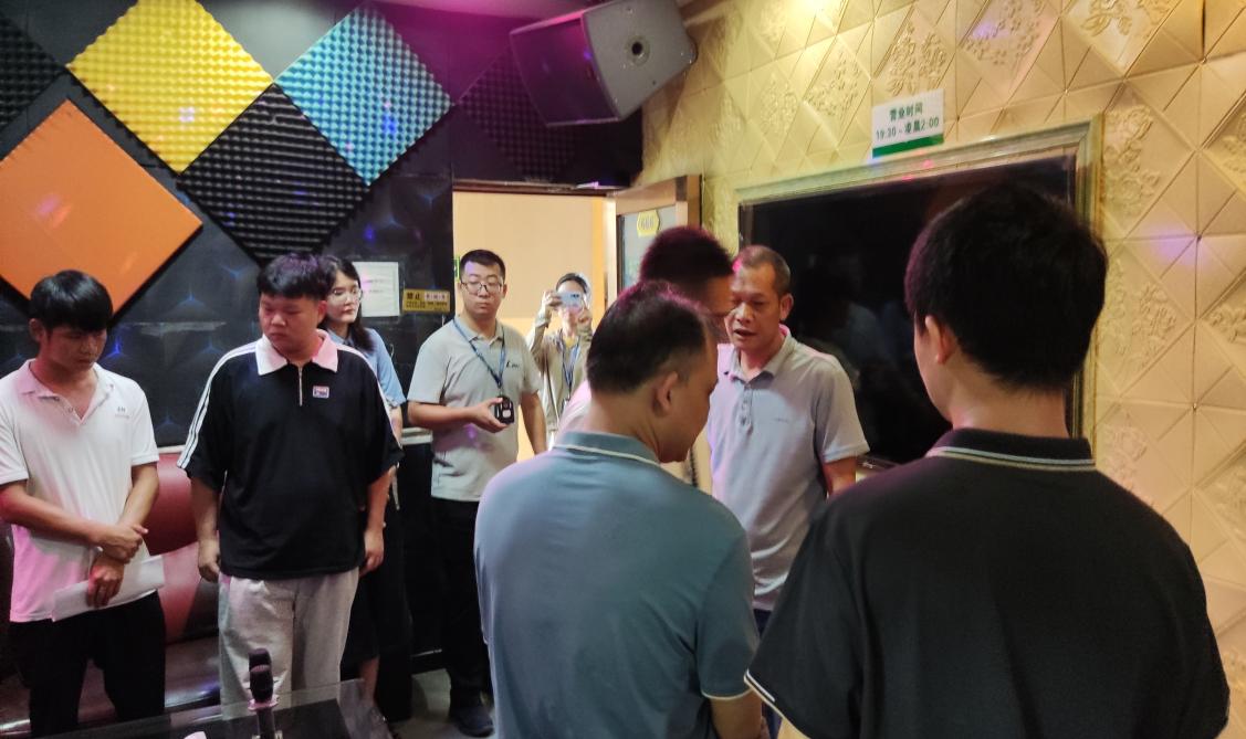 在對黎埠鎮部分經營場所進行突擊檢查時,檢查組重點檢查了經營場所是否存在無證經營、噪音擾民、播放違禁歌曲的情況,是否存在接待未成年人、不嚴格落實營業制度等違法違規經營行為,并要求經營單位對存在問題立行立改。另外,我局執法人員還詳細聽取了黎埠鎮執法辦開展文化市場執法情況的工作匯報,就文化執法工作難點及問題等方面進行了交流,要求黎埠鎮執法辦要依照法律法規查處相關違法違規行為,并就具體的執法事項開展了現場指導。
