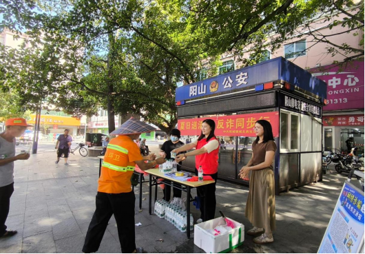 2024年8月9日,縣醫保局志愿者到城北西社區來來超市大榕樹下開展“七夕”夏日送清涼慰問活動,為高溫天氣堅守崗位的社區環衛工人、快遞騎手送上一絲清涼和一份關愛。
