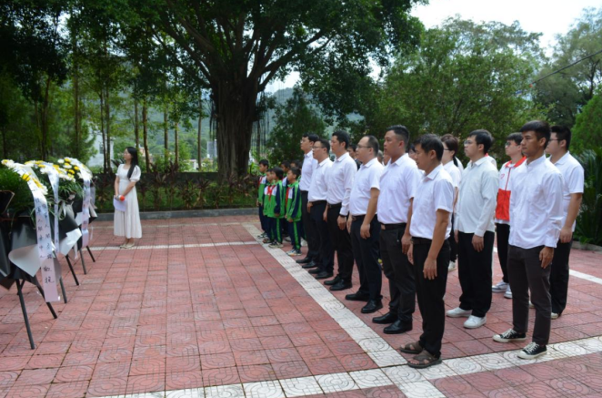 10點活動開始,在黎埠界灘烈士陵園烈士紀念碑前,全體肅立,播放《烈士紀念日號角》,唱國歌《義勇軍進行曲》,隨著深情的《獻花曲》響起,工作人員抬著花籃緩步走向烈士紀念碑,將花籃整齊擺放在烈士紀念碑前,現場領導緩步上前仔細整理緞帶,全體人員向革命先烈行三鞠躬禮,并默哀三分鐘,依次瞻仰烈士紀念碑并獻上鮮花。