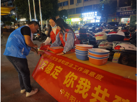 為貫徹落實上級關于群眾安全感和政法工作滿意度提升的部署,進一步增強全縣人民群眾安全感和對政法工作的認同感、滿意度,10月24日晚,陽山縣退役軍人事務局在城北城市廣場設置宣傳攤位,以開展滿意度宣傳、發放宣傳資料、現場解答群眾關切問題等方式,向市民普及法律法規、平安建設工作等政策和法律知識。