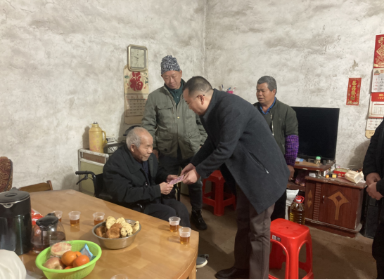 來到小江鎮五老(老游擊隊員)老人家中,一進門就聞到油炸糍粑的香味,家中兒孫齊聚一堂,現場歡聲笑語,氣氛熱烈。慰問組詳細詢問老人的身體和生活情況,并送上慰問金和慰問品,感謝他為黨和國家作出的貢獻。老人年輕時是游擊隊隊員,在革命戰爭年代,作為游擊隊員身先士卒,為黨和國家革命事業作出了貢獻,是我們不可多得的財富。