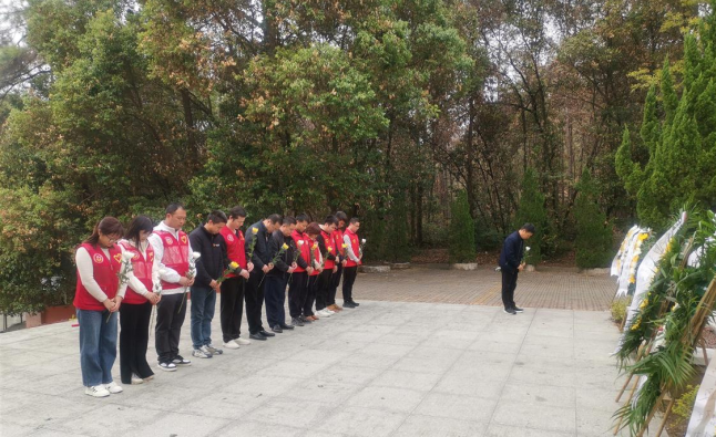 周邊環境清理干凈后,全體人員在革命烈士紀念碑前整齊列隊,向為革命事業英勇獻身的先烈們敬獻花束、鞠躬默哀。