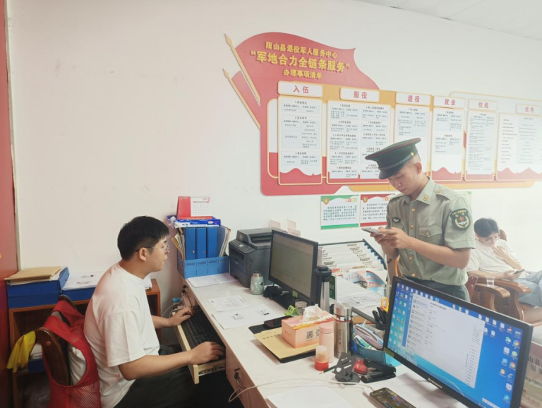 為做好2025年秋季退役士兵返鄉工作,讓返鄉士兵感受到便捷高效的“一站式”報到服務,陽山縣退役軍人事務局提前策劃,聯動各鄉鎮退役軍人服務站對秋季返鄉退役士兵進行摸底,掌握退役士兵返鄉的到達時間,全力做好接收報到服務工作。在縣退役軍人服務中心門口上方懸掛“熱烈歡迎陽山縣退役軍人光榮返鄉”字眼的橫幅,建立秋季退役士兵聯絡群,提前發布網上一站式報到操作流程,全天候為退役士兵答疑解惑。