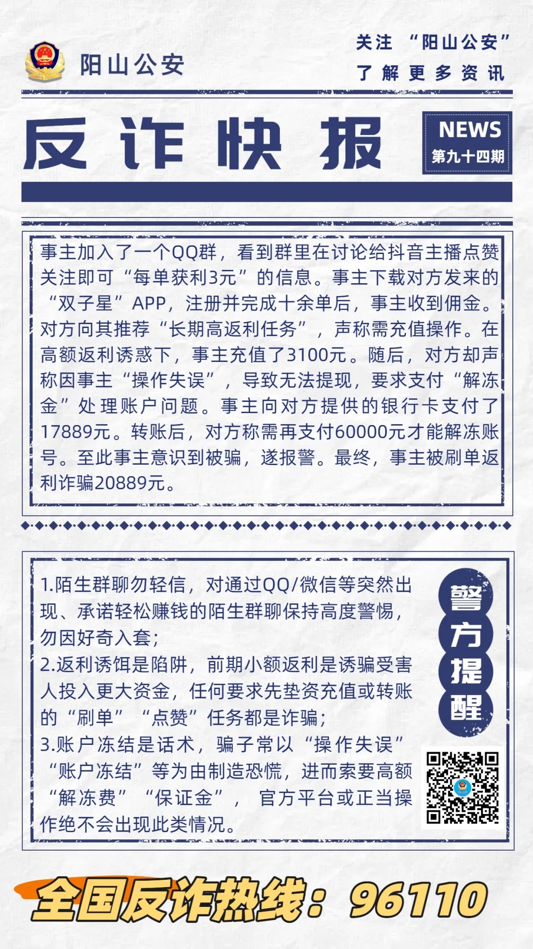 【反詐快報94期】輕信“點贊”返利,謹防“引流+刷單+詐騙”組合陷阱