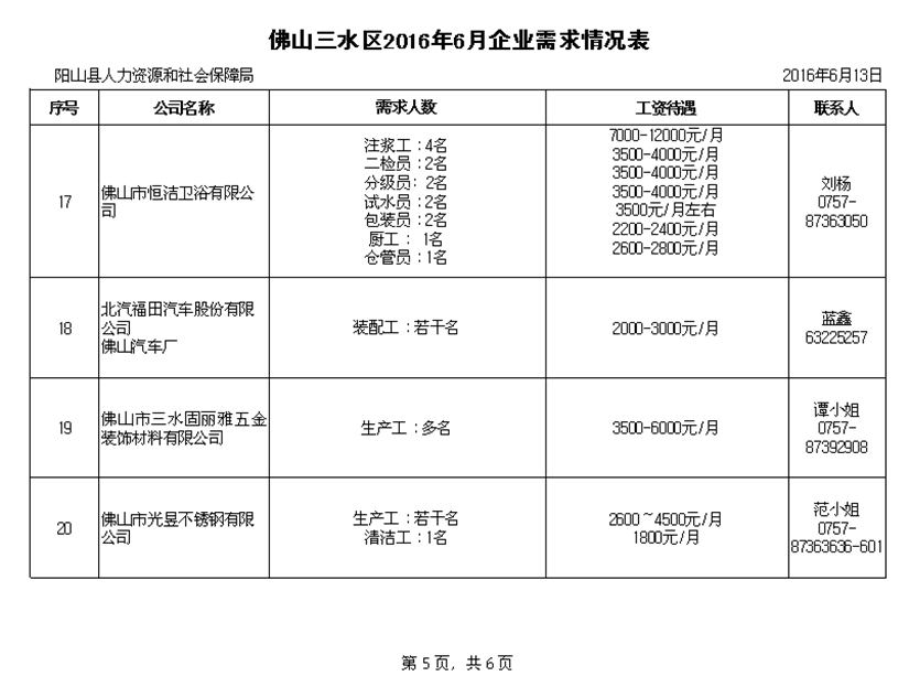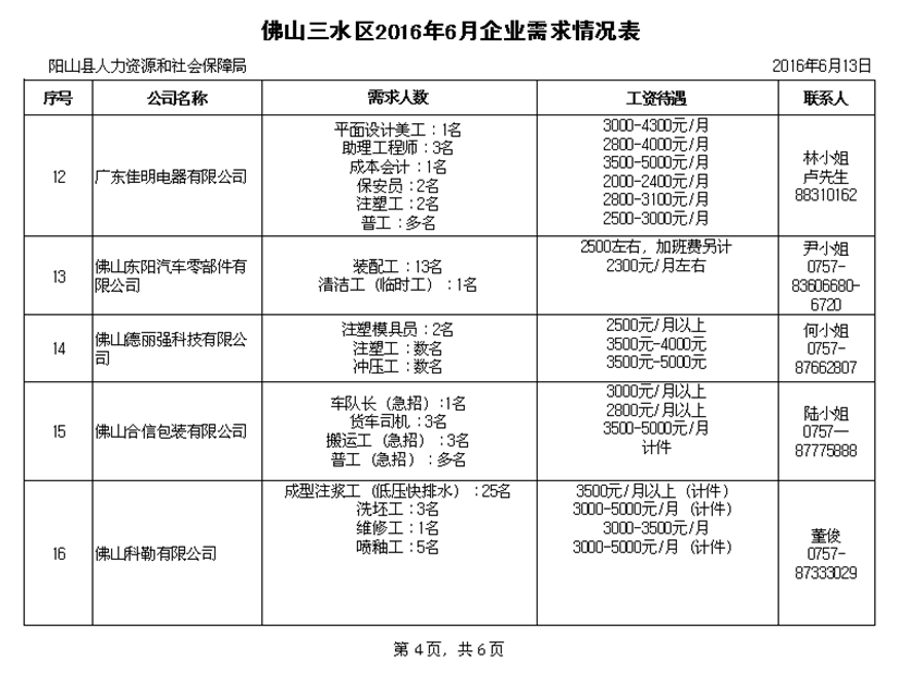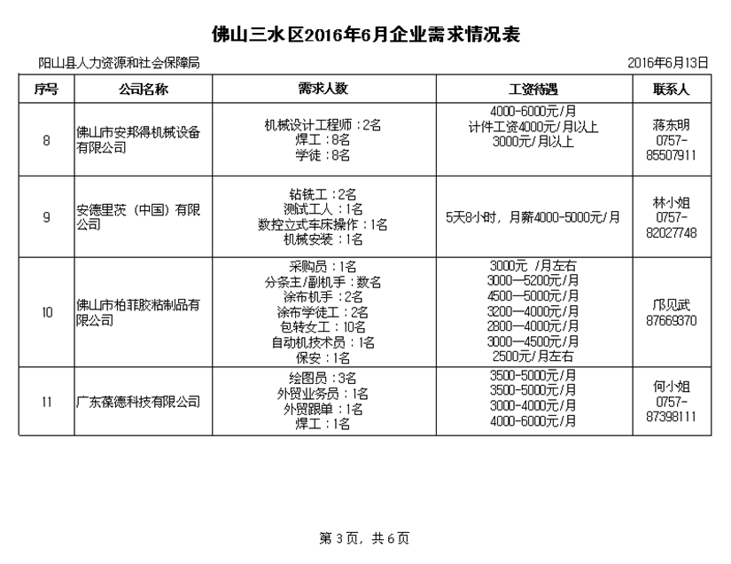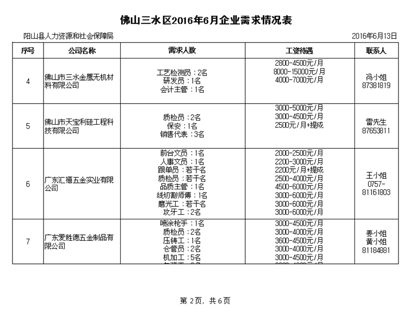 2.佛山三水區(qū)2016年6月企業(yè)需求情況表