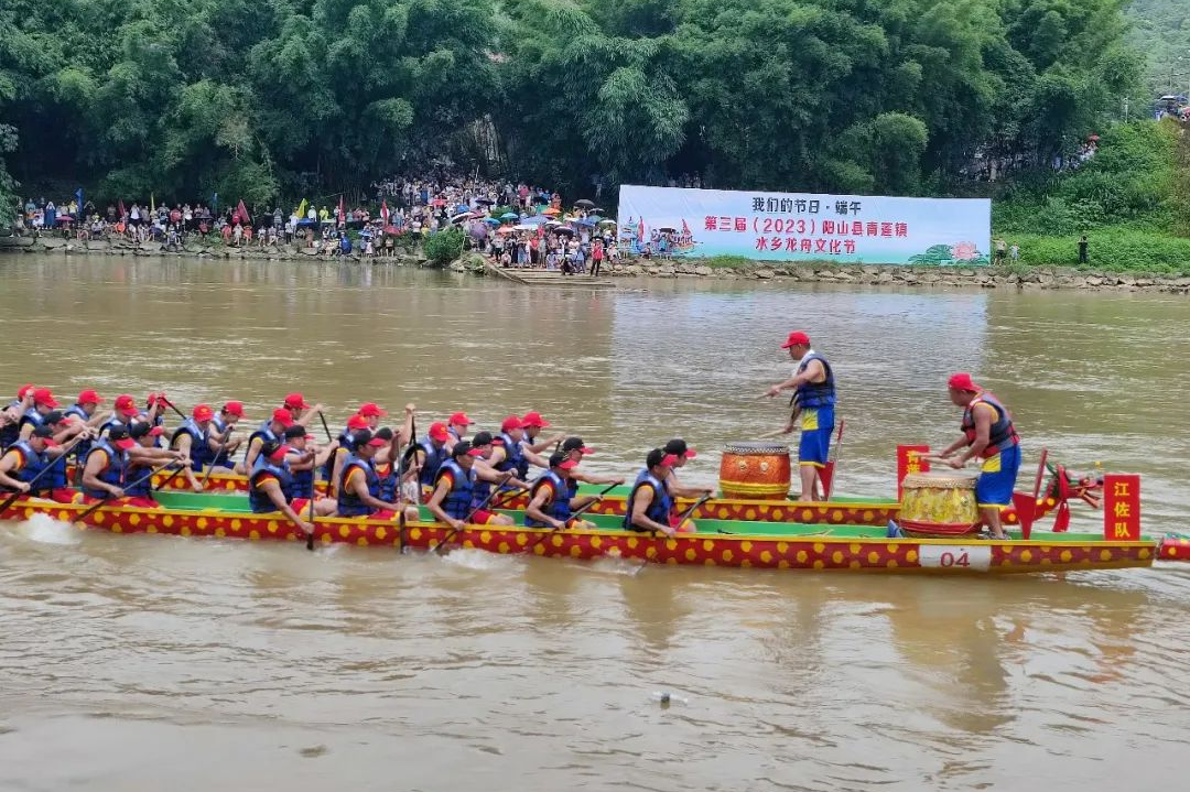 2023年,第三屆(2023)青蓮鎮水鄉龍舟文化節賽龍舟活動現場