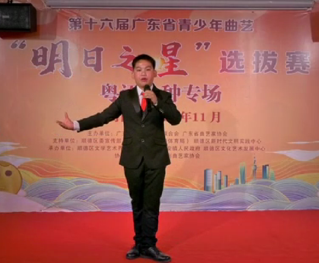 青蓮中心小學的王法霖表演的粵曲《伶仃洋上詠長橋》獲粵語曲種專場二等獎
